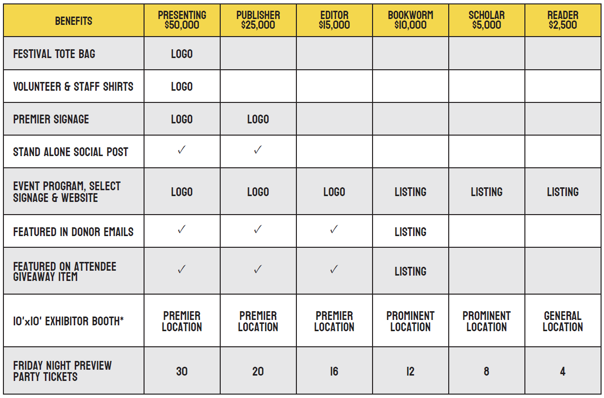 *All activities at booths must be literary or literacy based and are valued at $500 in goods and services.